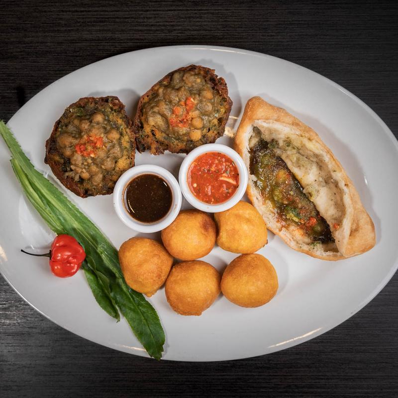 2 Items $14.99 | 4 Items $16.99 • Vegetable Options: Potato, Channa (Chickpeas), Channa & Aloo (Chickpeas & Potato), Bhaji (Spinach), Baigan Choka (Eggplant), Curry Mango, Tomatoes Choka, Fry Cabbage, Baighan & Aloo (Eggplant & Potato)